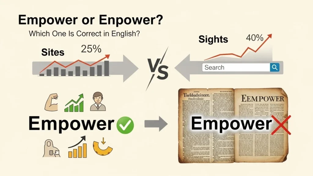 Enpower may look logical, but it never became a standard word in English dictionaries. English often keeps historical forms even when other versions seem logical. This is why empower survived, while enpower did not. Sites or Sights? The Simple Guide to Using the Right Word